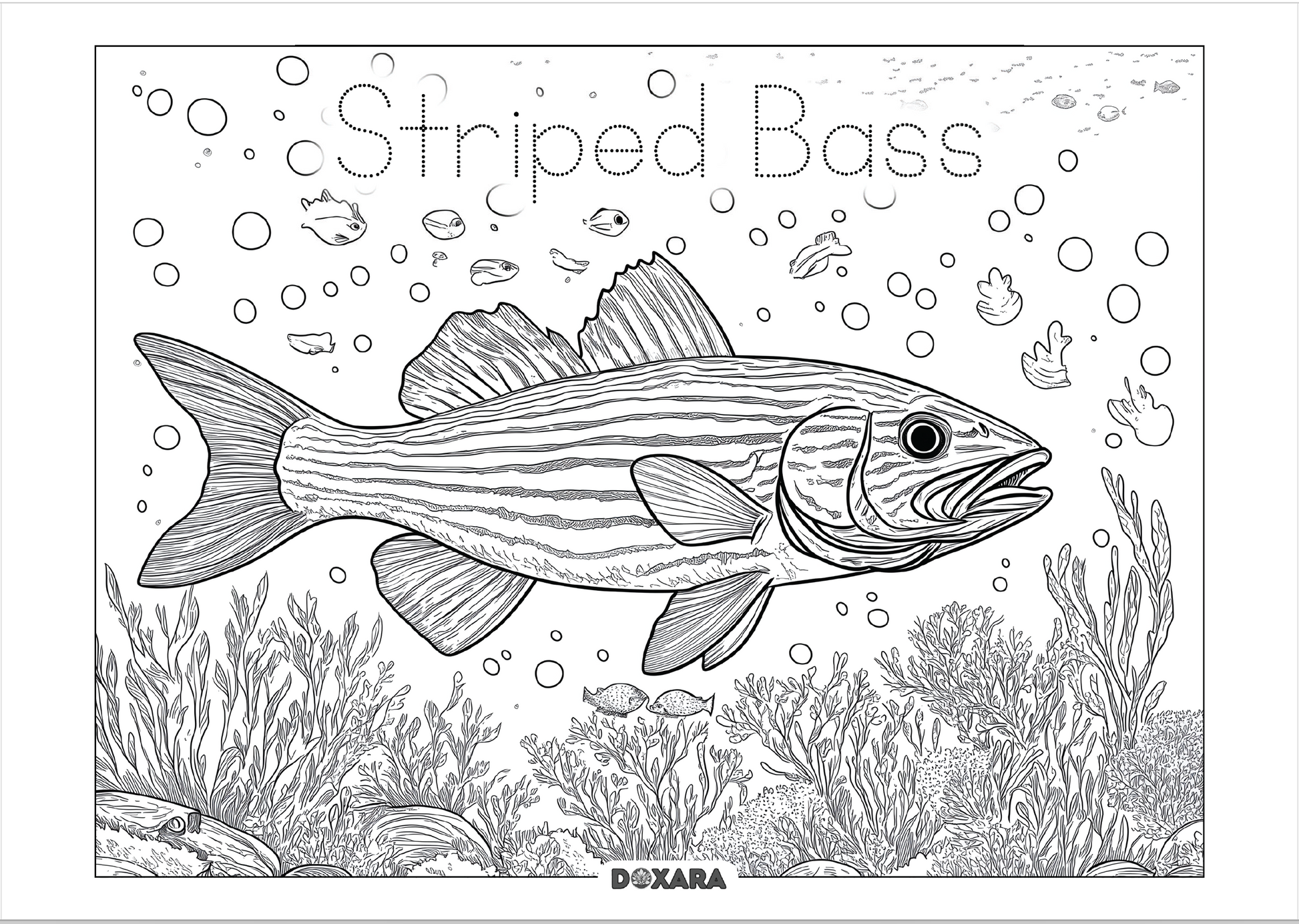 ๐ Striped Bass (Rockfish) Coloring Sheet (10-pack)